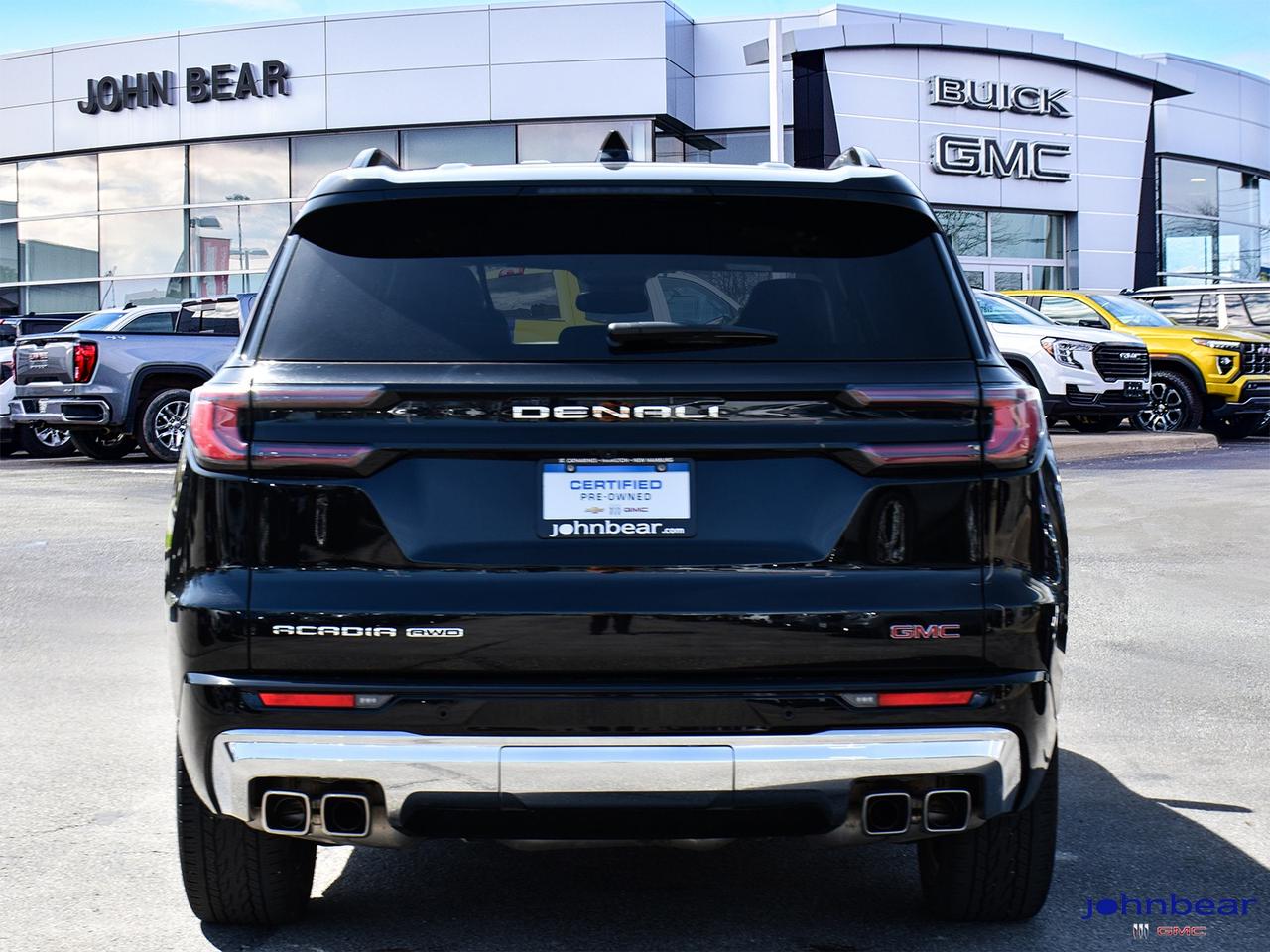 2024 GMC Acadia Denali *REMOTE START*, *LEATHER*, *PANORAMIC ROOF*, *NAVIGATION*, *SUNROOF*, *BACK-UP CAMERA*, *LOCAL TRADE*, *GM FACTORY CERTIFIED*, *MOONROOF*, *MARKET VALUE PRICING*, *CLEAN CARFAX REPORT*, *LANE DEPARTURE WARNING*, AWD, After Dark Leather. Recent Arrival! 2.5L DOHC 8-Speed Automatic AWD Certified. Certification Program Details: * 3.99% APR Financing on Select Models for 24mo* of PreOwned Vehicles * 3-month or 5,000 kilometres Comprehensive Limited Warranty Coverage * 24/7 Roadside Assistance * CARFAX® Vehicle History Report Sirius XM 3 months prepaid service * 150-Point Inspection * 30 Days or 2,500 kilometres exchange privilege SEE DEALER FOR ADDITIONAL DETAILS John Bear Buick GMC offers many automotive products and services. When you visit our store, what you can expect is quality both in our selection of pre-owned vehicles and from our world-class sales team. We offer Market Based Pricing with some of the best value in the Niagara region.